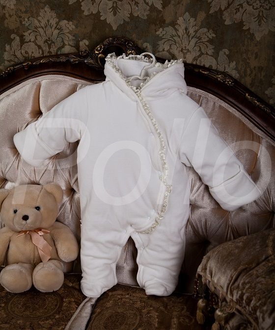 Утепленный комбинезон велюровый для новорожденного с рюшей.
