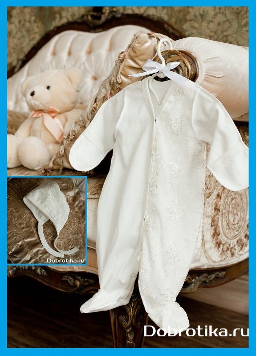 1. Комбинезончик молочного цвета, декорированный гипюрным полотном с одной стороны.