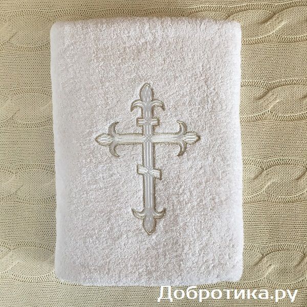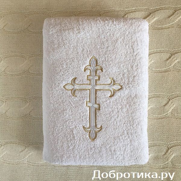 Махровое, очень мягкое, с пышным ворсом крестильное полотенце для принятия малыша из купели и его обтирания.