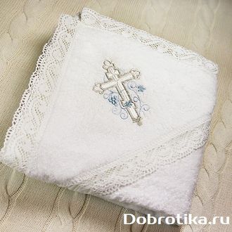 Полотенце (крыжма) из мягкого хлопка для принятия малыша от купели.