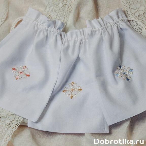 Мешочек, как для отдельных принадлежностей (крестильных рубашечек, платьиц), так и для крестильных наборов с пеленкой.
