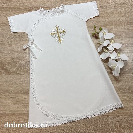 Классическое распашное крестильное платье-рубашечка для девочки.