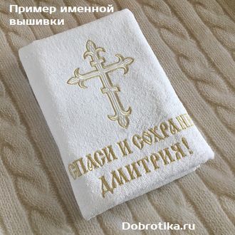 Отделка: вышитый крестик и "Спаси и Сохрани!", цвет вышивки и шрифт - на выбор