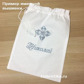 Мешочек для хранения Крестильных Принадлежностей с вышитым крестиком и любым именем
