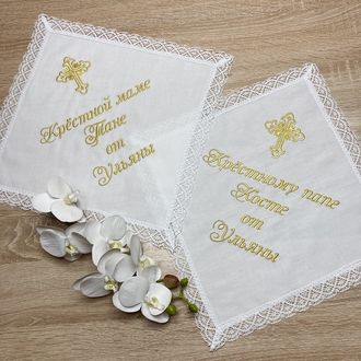 Салфетки (платочки) для крёстных, комплект из 2-х шт для крёстных