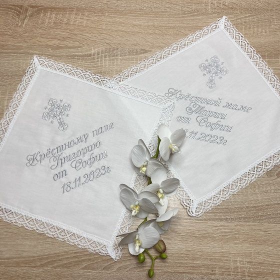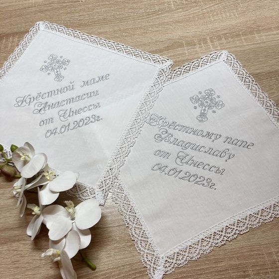 Памятные вышитые салфетки (платочки) для крестных, комплект 2 шт.