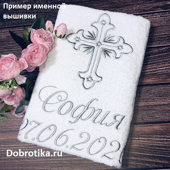 Также можно добавить именную вышивку на крыжме, например, имя ребенка, дату Крещения и т.д.