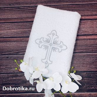 Традиционное махровое крестильное полотенце, размер 70х140 см.