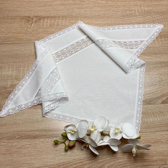 Нарядная хлопоковая кружевная косынка с широкой кружевной вставкой