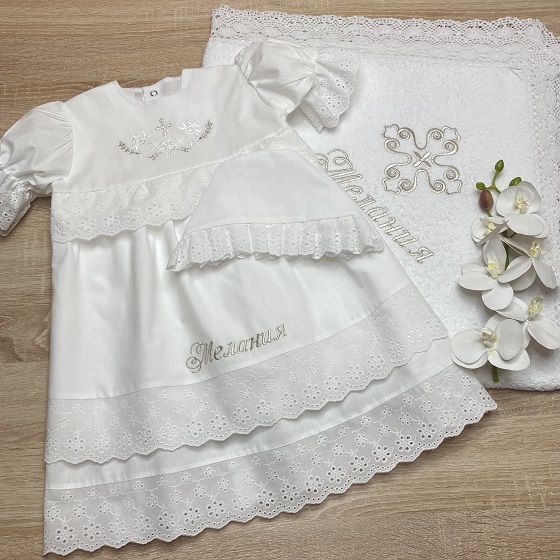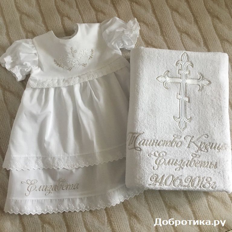 - В едином стиле с платьем можно подобрать крыжму (полотенце и/или пеленку), головной убор (чепчик или косынку)