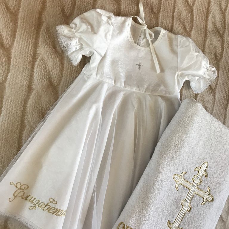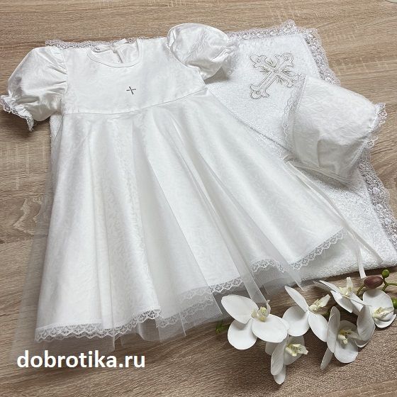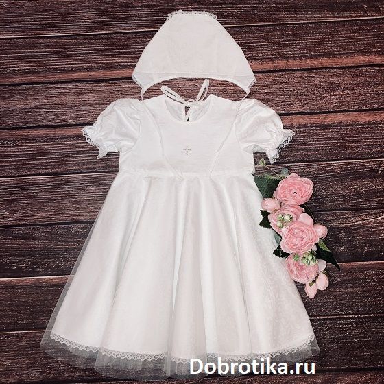 - В едином стиле с платьем можно подобрать крыжму (полотенце и/или пеленку), головной убор (чепчик или косынку)