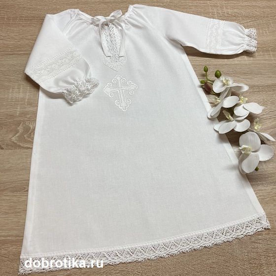 - Отделка: хлопковое кружево, белый вышитый крестик спереди