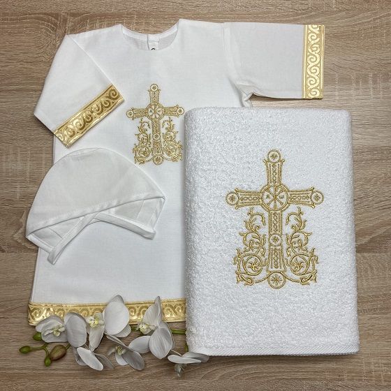 Украшено вышитым золотым крестиком