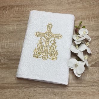 Махровое, очень мягкое крестильное полотенце для принятия малыша из купели и его обтирания.