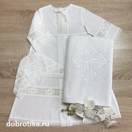 - большой мешочек с вышитым крестиком и кружевом для хранения набора после Крещения +850 руб.