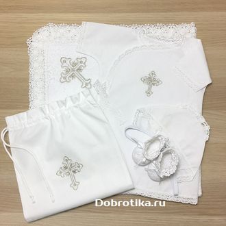 1. Распашная рубашка для Крещения из 100% хлопкового сатина или 100% хлопковой теплой фланели с вышитым крестиком и кружевом