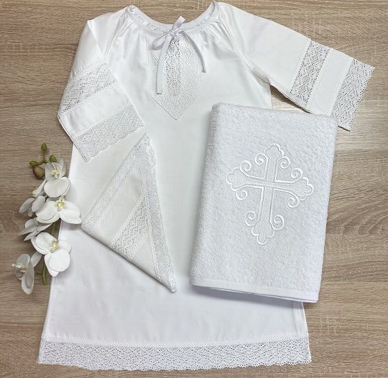 3. Махровое крестильное полотенце 70х140 см с вышитым белым крестиком