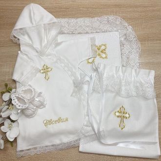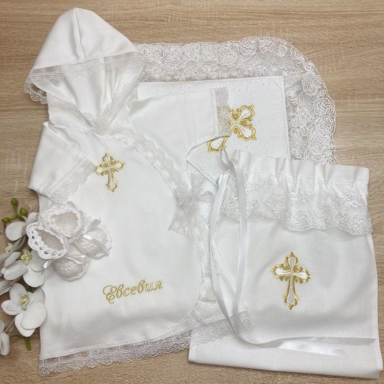 Набор для Крещения девочки модель "Злата", ткань платья на выбор - сатин или теплая фланель
