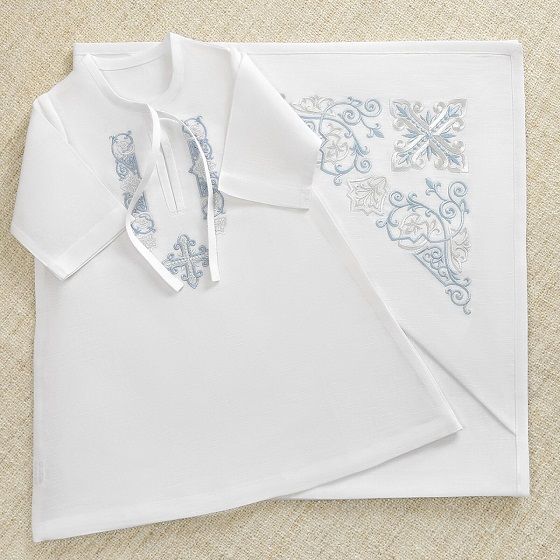 1. Рубашка, махровое полотенце 70х140см без капюшона и кружев с вышитым крестиком - 4600 руб.