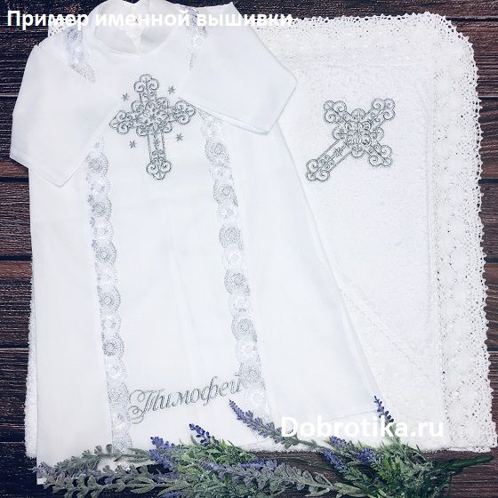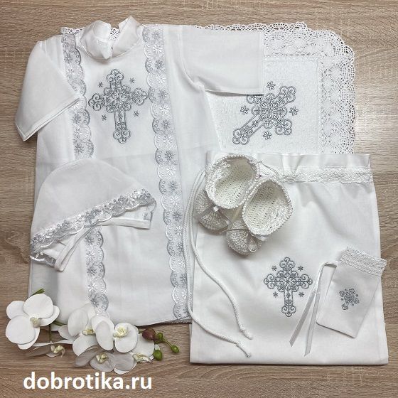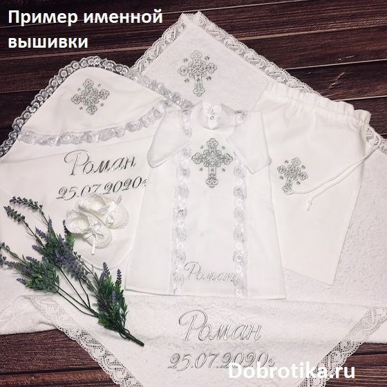 - Мешочком для хранения набора после Крещения (с вышитым крестиком и кружевом) + 850 руб.