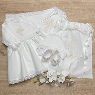 - Приятная ткань - 100% хлопковый сатин люкс - платье и чепчик, 100% хлопковая махра - крестильное полотенце