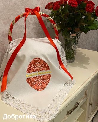 Наша мастерская предлагает салфетку с пасхальной вышивкой, которая украсит Вашу пасхальную корзину и, конечно же, станет центральным украшением пасхального стола. Вышивка выполнена высококачественными вискозными нитками с приятным легким блеском.