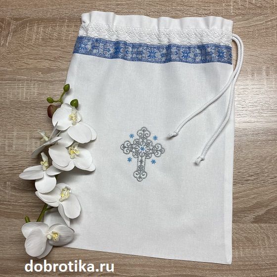 вышитый крестик серебристого цвета спереди с маленькими звездочками с четырех сторон