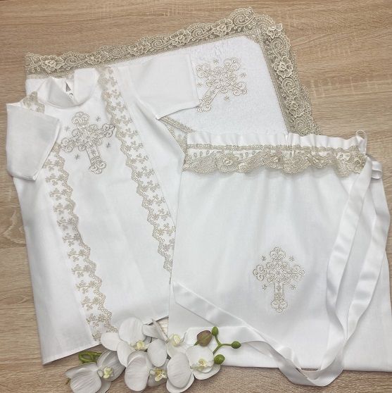 - Мешочком для хранения набора после Крещения (с вышитым белым крестиком) + 950 руб.