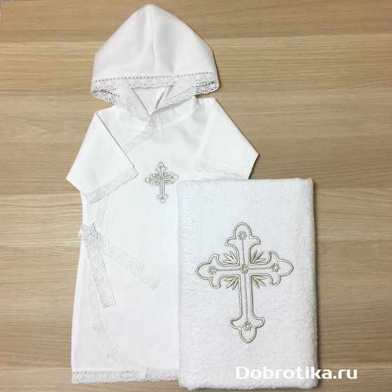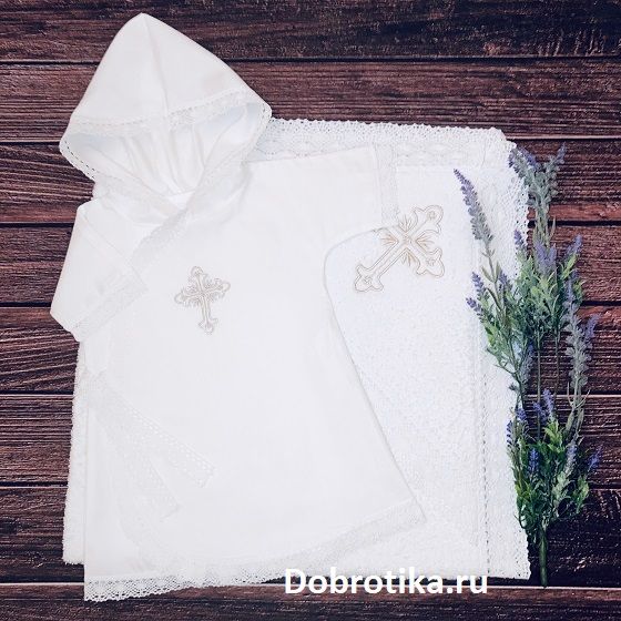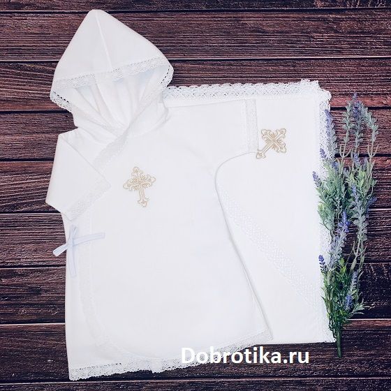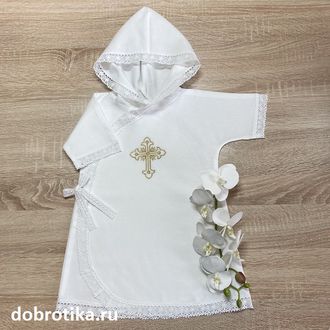 - Длинная рубашка для Крещения с капюшоном и вышитым крестиком из 100% хлопка