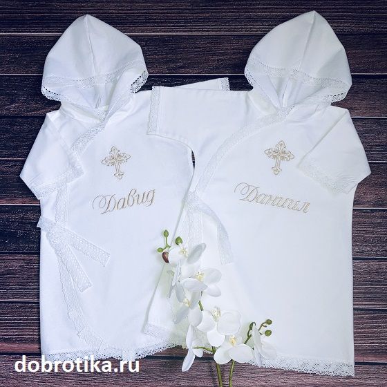 Распашная рубашка с капюшоном для Крещения мальчика модель "Светлое Таинство"