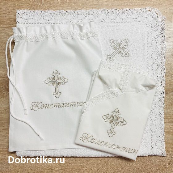 В наличии различные виды махровых полотенец и пеленок, мешочки для хранения крестильной одежды после Таинства, пинетки, пледы