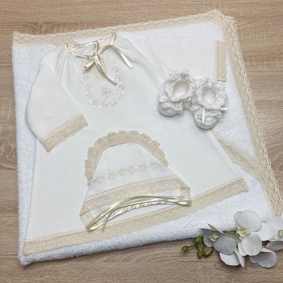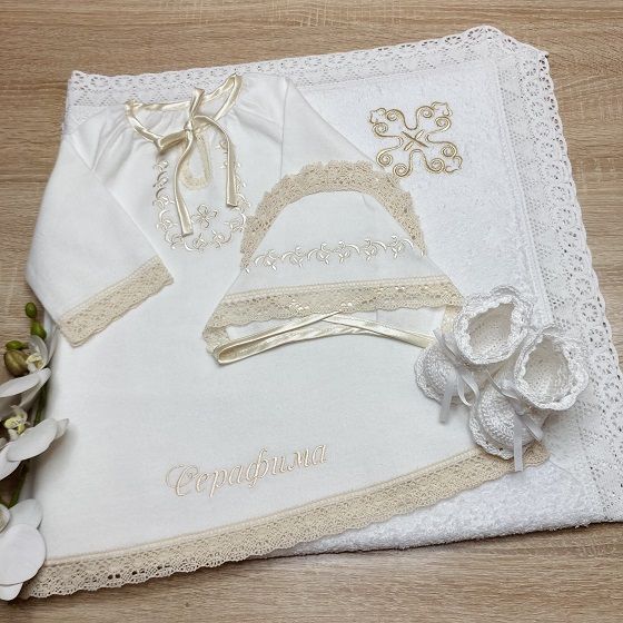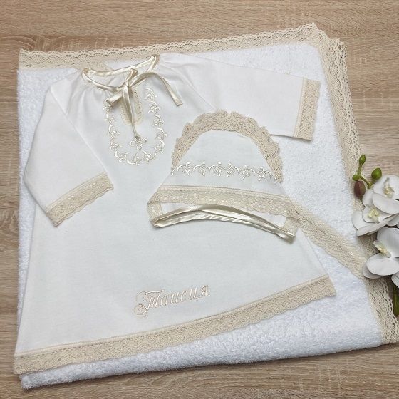 - В таком же стиле можно выбрать крыжму - полотенце или пеленку, чепчик или косынку