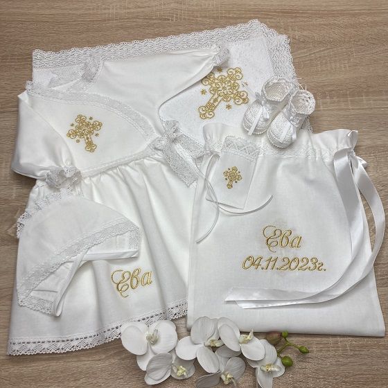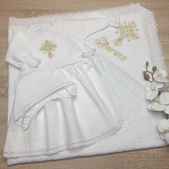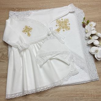 Тёплый набор для Крещения девочки модель "Золотая Нежность"