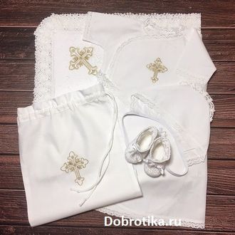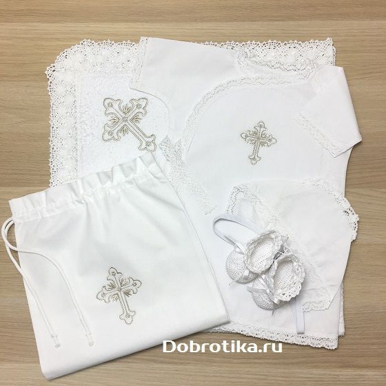 5. Большой мешочек с вышитым крестико и кружевом для хранения комплекта после Крещения