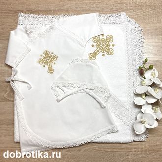 1. Длинная распашная рубашечка (одевается как халатик) с вышитым крестиком и мягким хлопковым кружевом