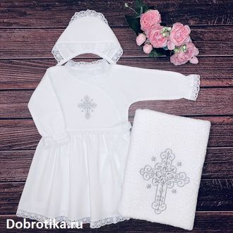 Тёплый крестильный набор для Крещения девочки "Нежность"